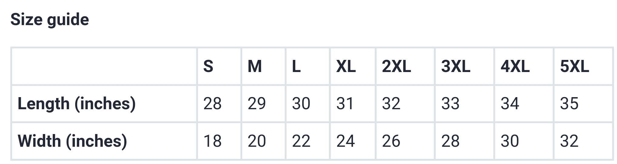 | S | M | L | XL | 2XL | 3XL | 4XL | 5XL | |
