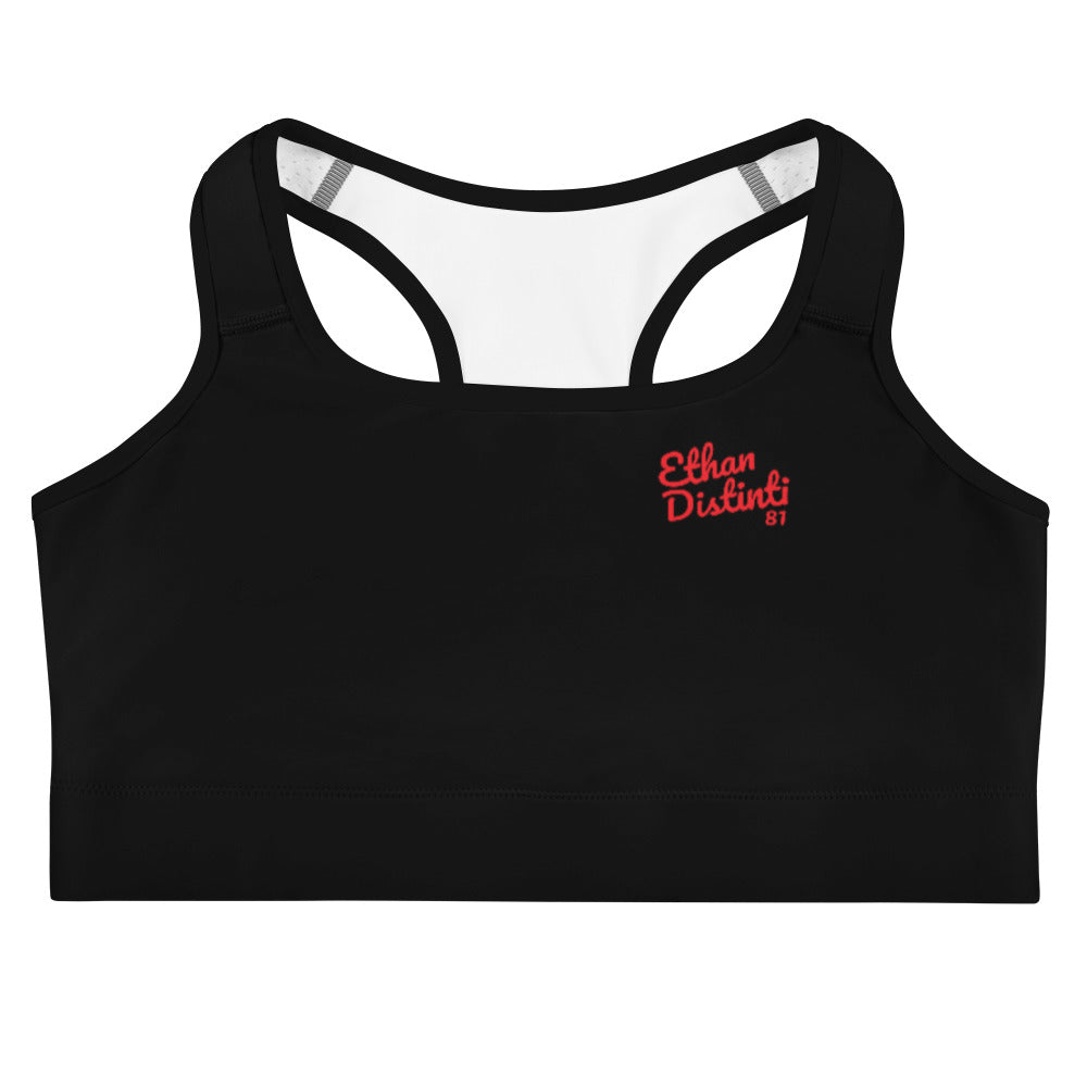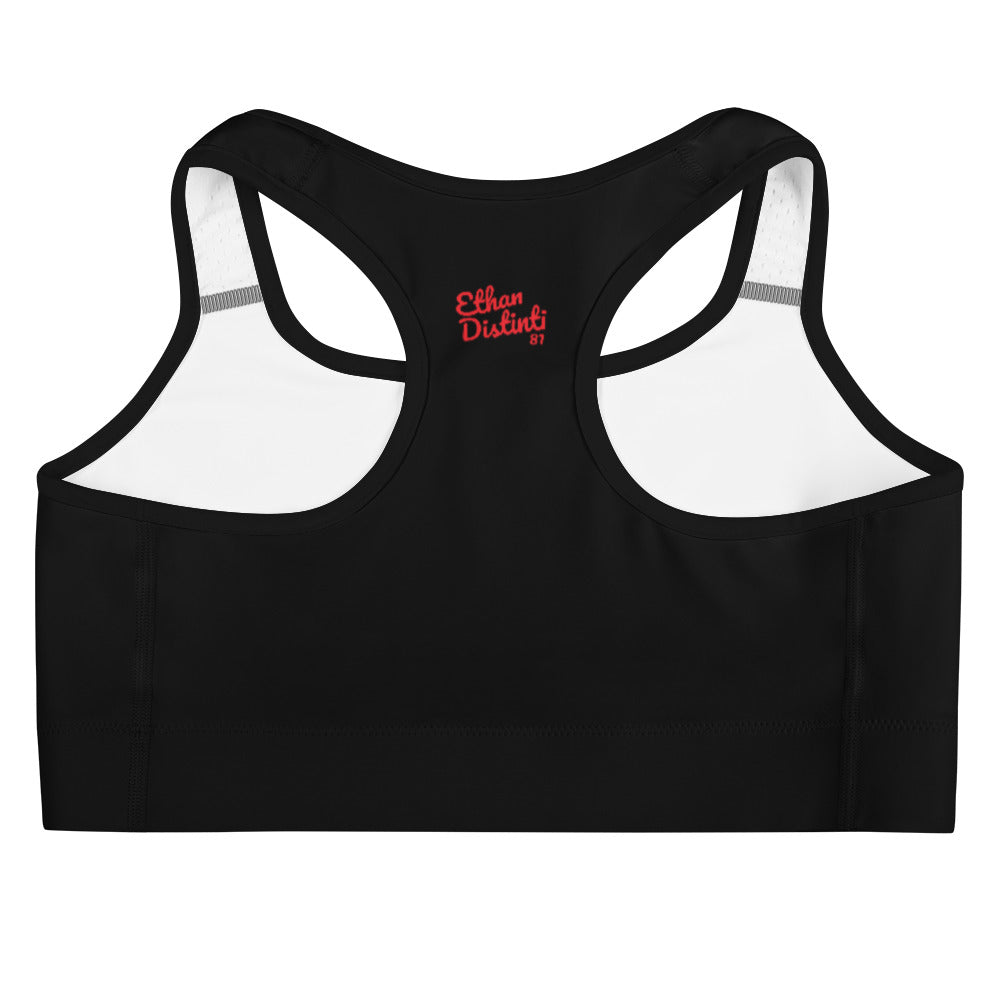 Art 101 - Black - Red Text, With Black Piping - Sports bra