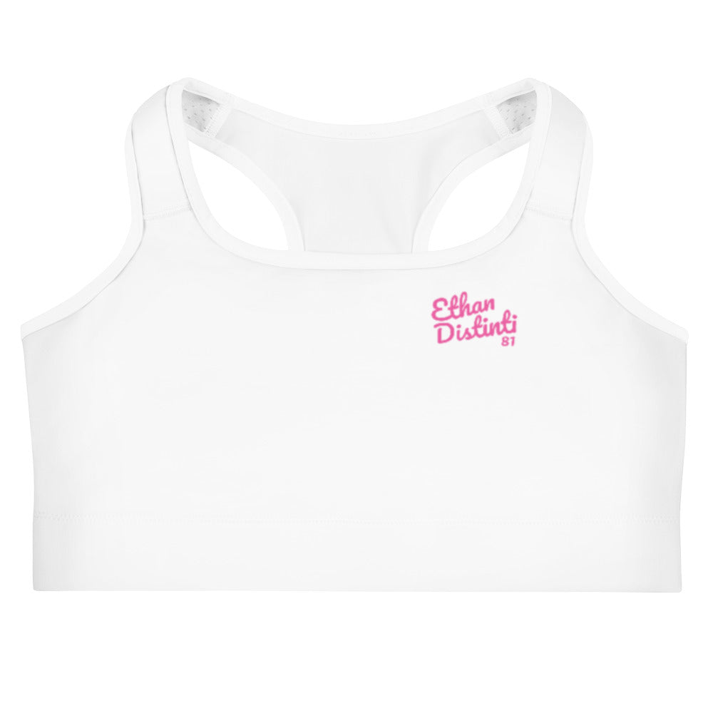 Art 102A - White - Pink Text - White Piping - Sports bra