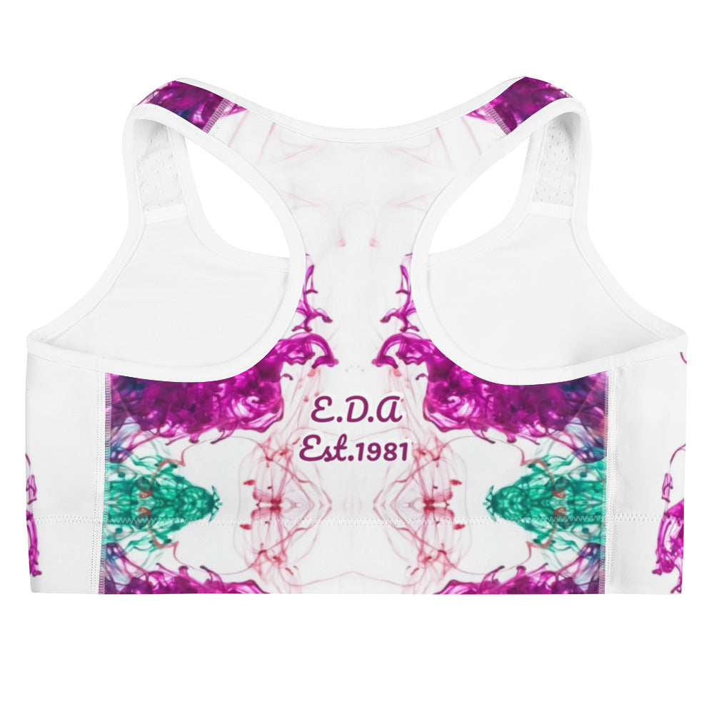 This gorgeous sports bra is made from moisture-wicking material that stays dry during low and medium intensity workouts. The bra has support material in the shoulder straps, double layer front, and a wide elastic band to ensure constant support.