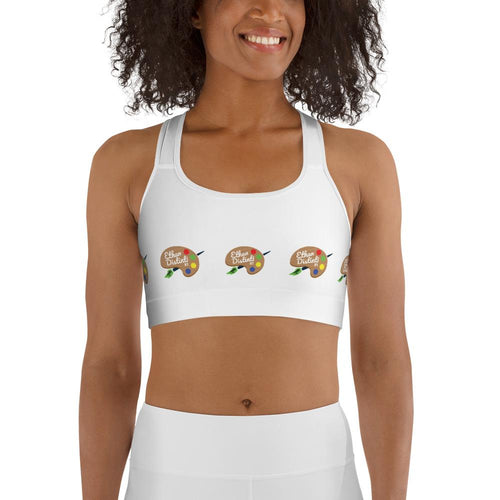 Art 101 - Black - White Text - Black Piping - Sports bra